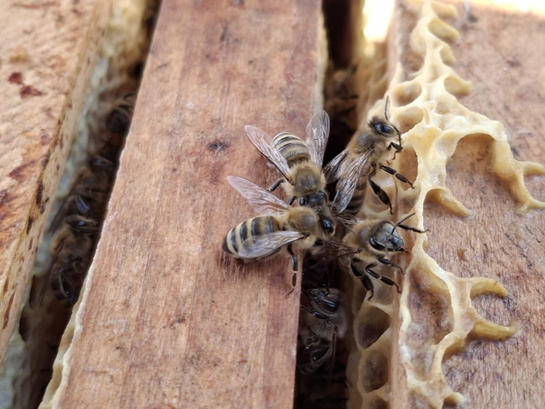 Alle Bienen werden von den alten Rähmchen und der alten Zarge in eine neue Zarge mit neuen Rähmchen und Wachsmittelwänden abgekehrt. Die Bienen beginnen sofort, neue Waben zu bauen. Dafür muss man ihnen genügend Futter geben, damit sie das Wachs produzieren können. Innerhalb einer Woche haben sie alle notwendigen Waben gebaut, damit die Königin wieder Eier ablegen kann und Nektar sowie Pollen eingelagert werden kann. Eigentlich ist es wie bei einem Schwarm, der ja sein neues Zuhause auch erstmal herrichten muss. Die alten Waben werden mit der Brut und allem anderen in einem Wachs-Schmelzer eingeschmolzen. Dabei stirbt die vorhandene Brut – aber auch alle in den Brutzellen lebenden Varroa-Milben. Klingt brutal – und ist es bis zu einem gewissen Grad auch. Das Bienenvolk verliert dadurch eine vollständige Generation Jungbienen in allen Stadien. Diese Schwächung holen sie aber mit ehrgeiziger Arbeitsleistung schnell wieder auf – vielleicht motiviert sie dabei auch das schöne neue Heim.